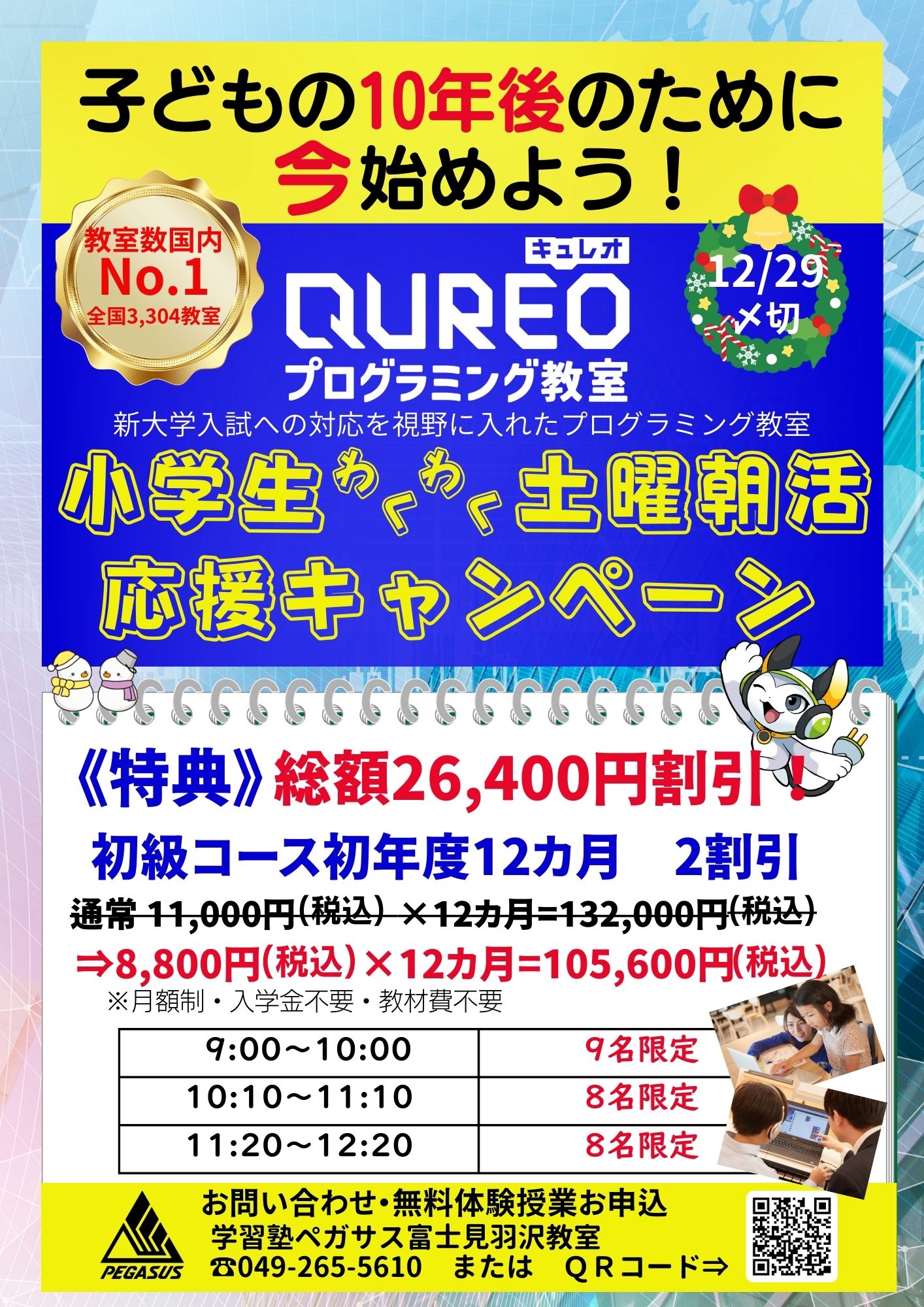QUREOプログラミング教室/小学生わくわく『土曜朝活』応援キャンペーン