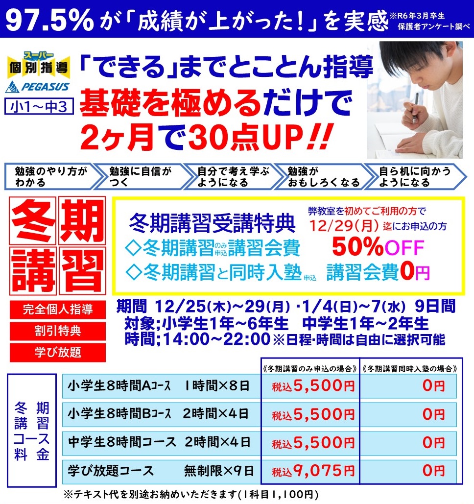 学習塾ペガサス富士見羽沢教室が「選ばれる理由」はここにあります。