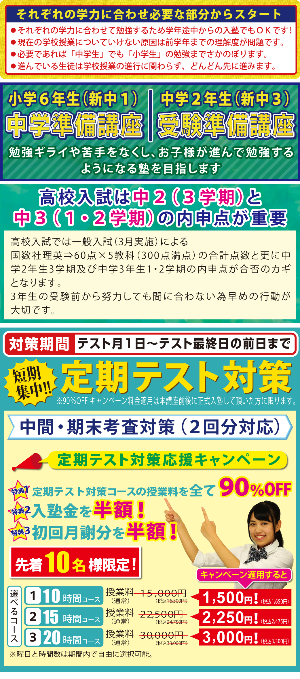 北九州市小倉北区の個別指導。 小倉北区の小学生・中学生対象。春期講習・春期講座・体験学習も随時募集中