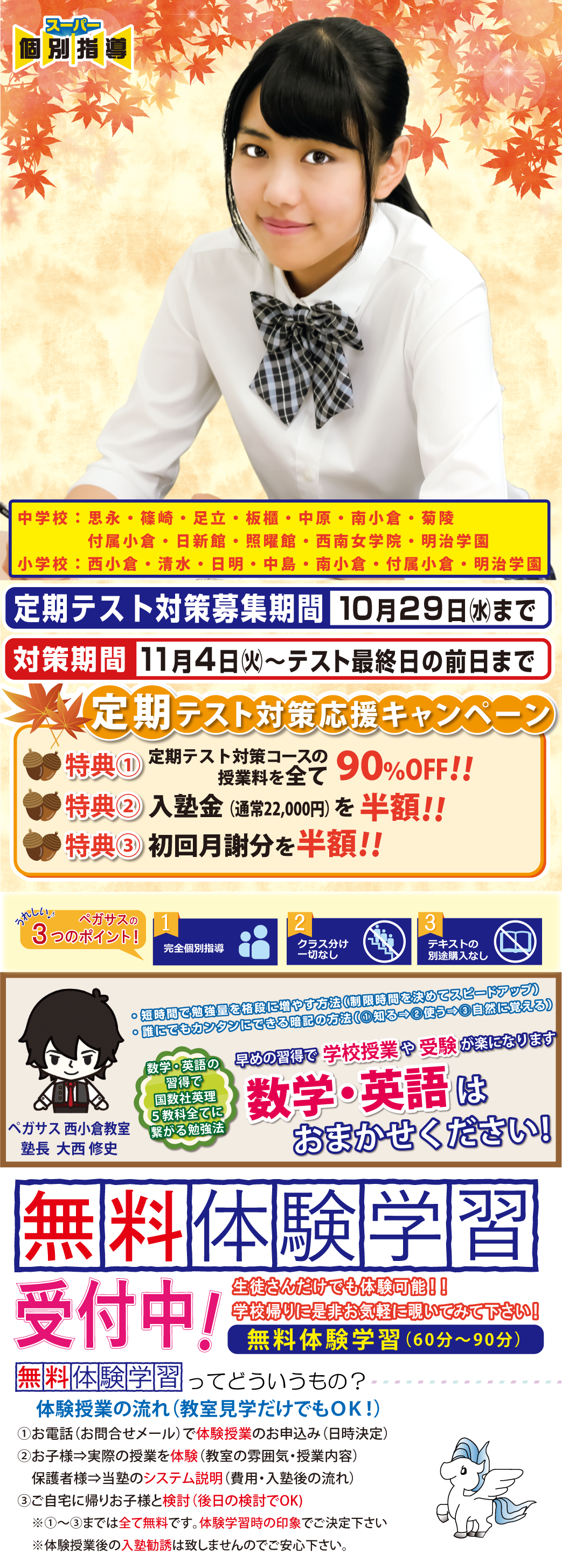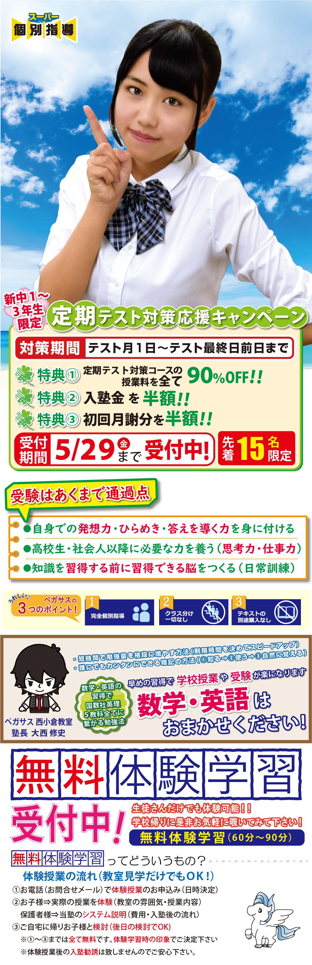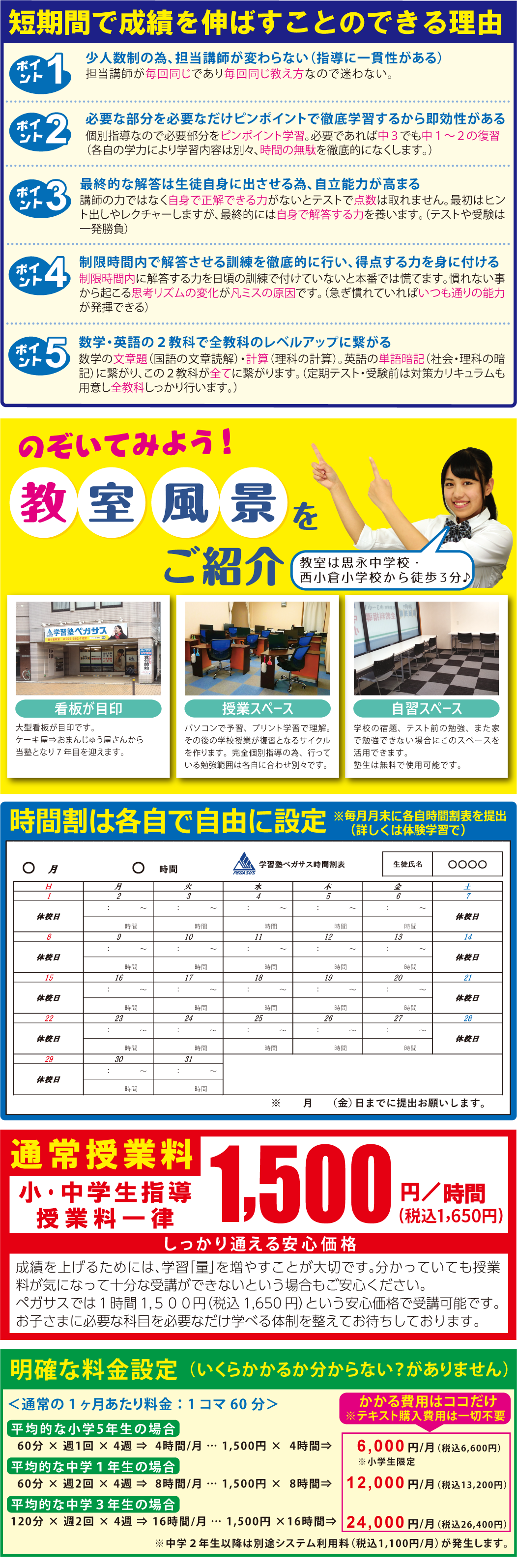 北九州市小倉北区の個別指導。 小倉北区の小学生・中学生対象。春期講習・春期講座・体験学習も随時募集中
